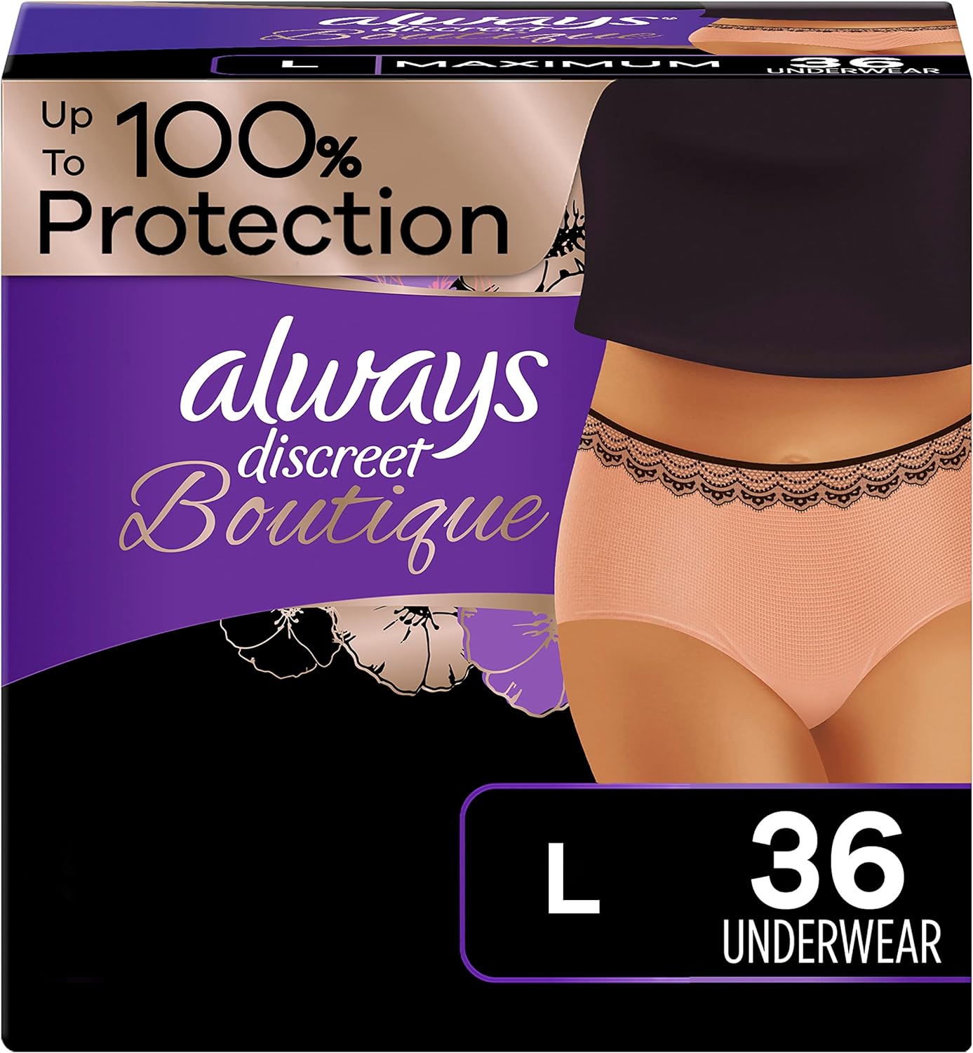 Always Discreet Boutique Incontinence Underwear for Women, Large, 18 x 2 Packs (36 Count total)