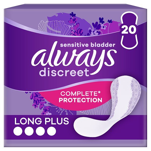 Product Information:For those times when you need a little extra protection, there’re Always Discreet Incontinence Liners Plus for sensitive bladder,Features:For those times when you need a little extra protection, there’re Always Discreet Incontinence Liners Plus for sensitive bladder. These liners are ultra thin for great comfort. They’re designed to lock away wetness and neutralise odours for added freshness. Always Discreet Liners Plus are Always Discreet's best incontinence liner for sensitive bladder for when you suffer from a weak bladder, or experience unitentional frequent urination,Benefit:Always Discreet for sensitive bladder. RapidDry and odour lock protection Always Discreet Incontinence thin and flexible, even when wet. Fits discreetly Unique DualLock core. Helps lock away odour and wetness Less than 2.5mm thin Exclusive OdourLock Technology neutralises odours instantly and continuously, Lightly scented Always Discreet Incontinence protections are dermatologically tested,Warning or Restrictions:To avoid danger of suffocation, keep all packaging material away from babies and children,Product Specification:Product code: 200076,Product Uses:Do not flush pad down the toilet. Keep in a cool dry place