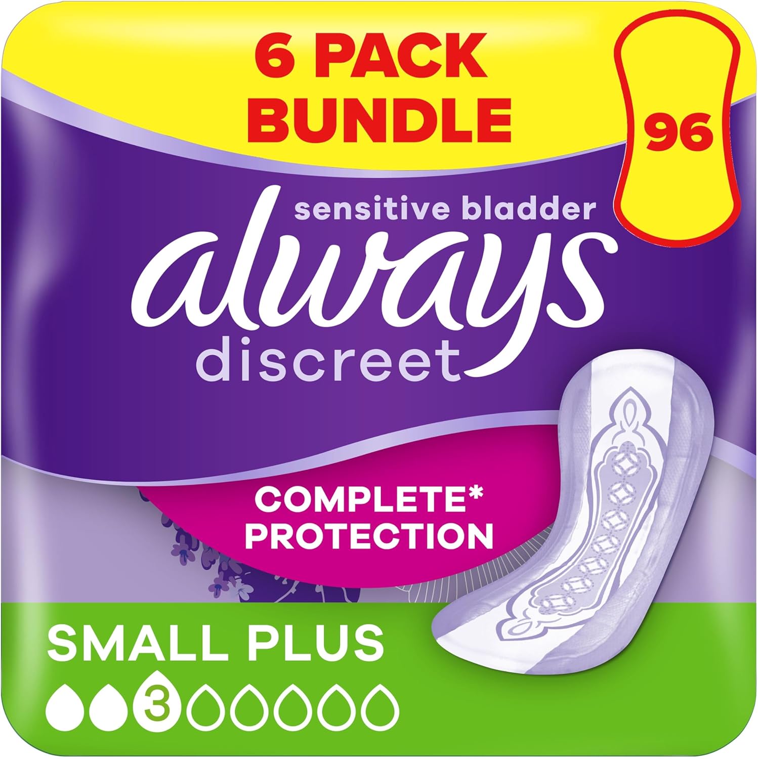 Always Discreet Incontinence Pads Women, Small Plus, 96 Moderate Absorbency Pads (16 X 6 Packs), Odour Neutraliser, For Sensitive Bladder