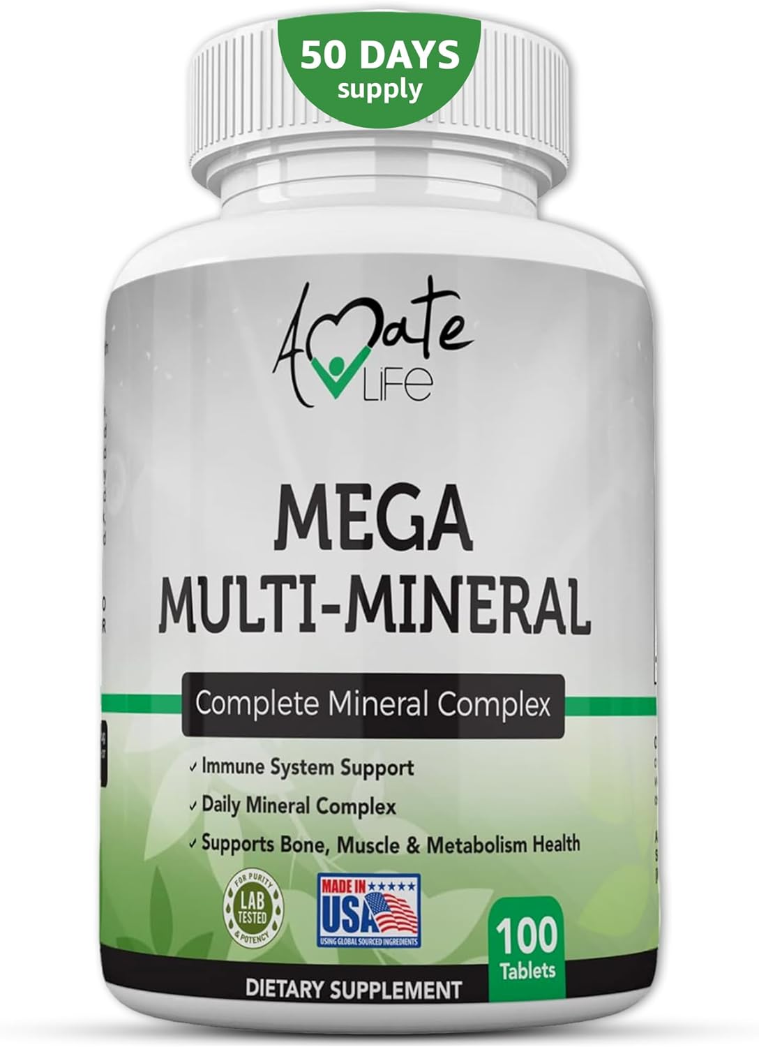 DESCRIPTION : Amate Life Multi Minerals Supplement Complete Mineral Complex with Vitamin D3, Calcium, Magnesium, Zinc & Iodine Bone, Muscle, Metabolism & Immune Support Mega Multi-Mineral Supplement 100 Tablets