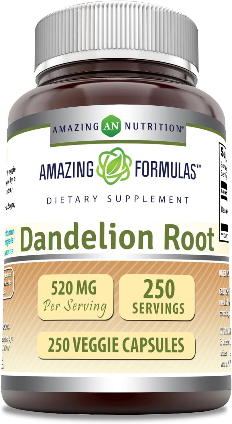 Amazing Formulas Dandelion Root 520Mg Veggie Capsules | 100% Pure Dandelion (Taraxacum Officinale) (250 Count)