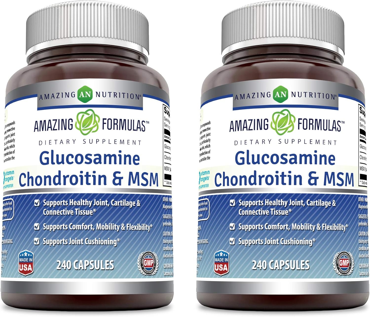 Amazing Formulas Glucosamine + Chondroitin + MSM Capsules for Healthy Joint, Cartilage and Connective Tissue - Promotes Joint Comfort & exibility (240 Count (2 Pack))
