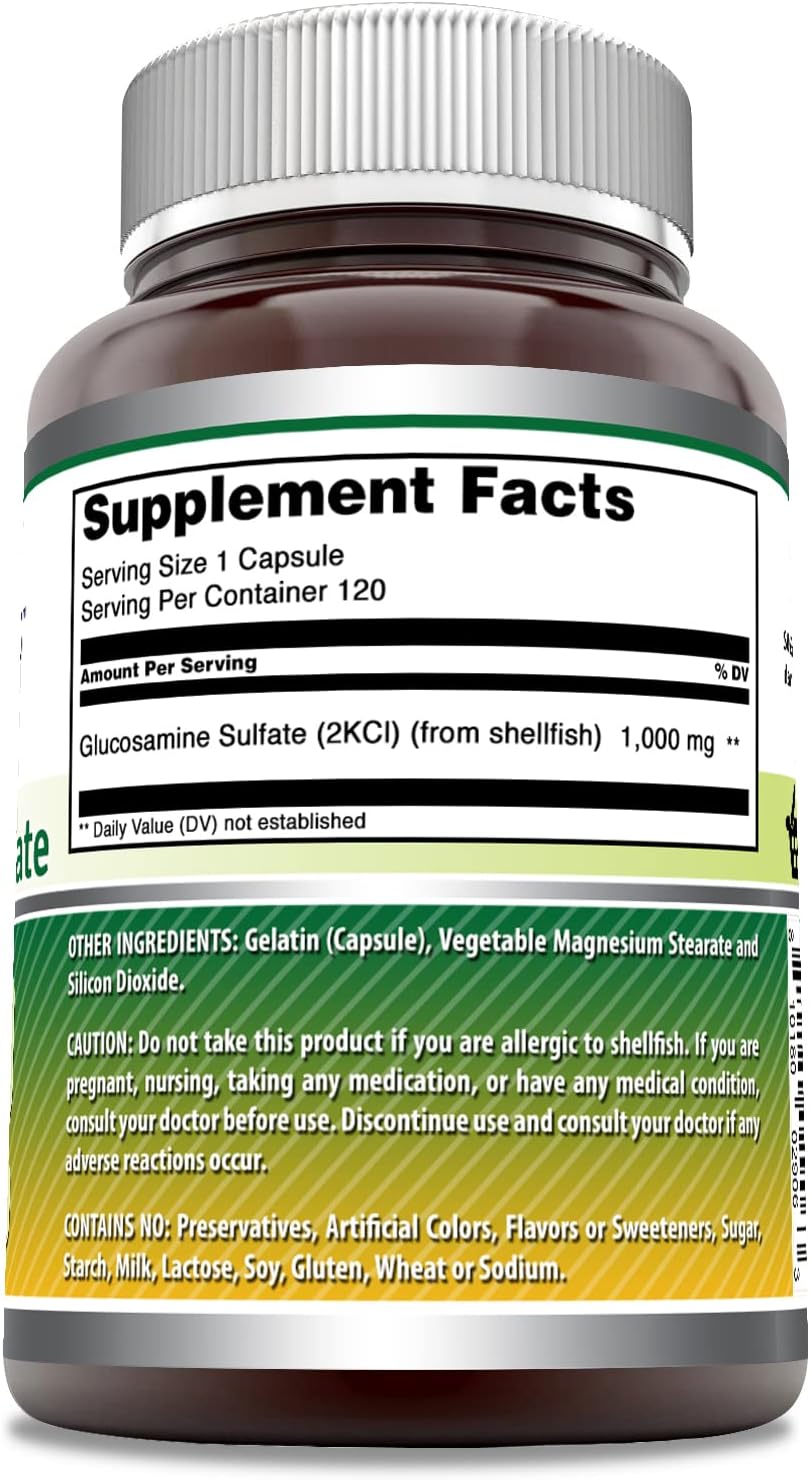 Mega Strength Each Of Our Glucosamine Sulfate Mega Strength Capsules Contains High Potency Glucosamine Sulfate For Better Effectiveness.* A Trusted Form Glucosamine Sulfate Has Been Widely Studied For It Benefits In Joint Pain And Inflammation Related Problems* Easy To Take Just One Of Our Glucosamine Sulfate 1000Mg Capsules Gives You The Most Recommended Dosage For Potential Relief From Joint Pain & Inflammation Related Pains* Made In The Usa You Can Trust The Quality Of Amazing Formulas Glucosamine Supplement Because It'S Manufactured Exclusively In A Gmp Certified Facility In The United States!* Easy To Fit Into Any Healthy Diet Our Glucosamine Sulfate Supplement Contains No Gluten, Sugar, Starch, Milk, Lactose, Soy, Wheat, Yeast Or Sodiumyour Joints Are Exposed To A Lot Of Wear, Tear And Pressure On A Daily Basis. That'S Why Your Body Manufactures A Protective Substance Called Cartilage To Insulate And Protect Them. Unfortunately, Cartilage Protection Often Slows Down With Age, And In People With Arthritis Or Inflammatory Related Problems, That Natural Protection Gradually Becomes Worn Away, Leading To Stiffness, Stabbing Joint Pain And Chronic Aching Joints.Numerous Studies Suggest That A Substance That'S Naturally Present In The Body Called Glucosamine May Help To Promote Healthy Cartilage Production When Taken In Supplement Form. The Type Most Widely Studied In Glucosamine Arthritis Research Isglucosamine Sulfate, And Amazing Formulas Glucosamine Sulfate Supplement Makes It Easy For You To Reap Its Benefits!With Our Glucosamine Sulfate Mega Strength 1000Mg Dosage, Getting A Potent Dose Of Glucosamine Sulfate Is Simple. Our Capsules Are Completely Free Artificial Colors, Flavors Or Sweeteners.Don'T Settle For Anything Less Than The Best Glucosamine Sulfate High Potency Supplement To Address Your Joint Pain And Stiff, Aching Joints. Order Amazing