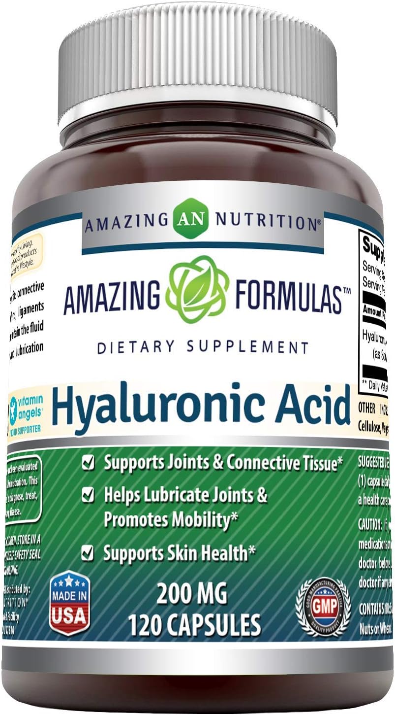 Amazing Formulas Hyaluronic Acid Capsules Supplement- Support Healthy Connective Tissue And Joints - Promote Youthful Healthy Skin (200 Mg, 120 Count)