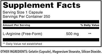 Amazing Formulas L-Arginine Supplement | 500 Mg Per Serving | 250 Capsules | Amino Acid Supplement For Men & Women | Non-Gmo | Gluten Free | Made In Usa
