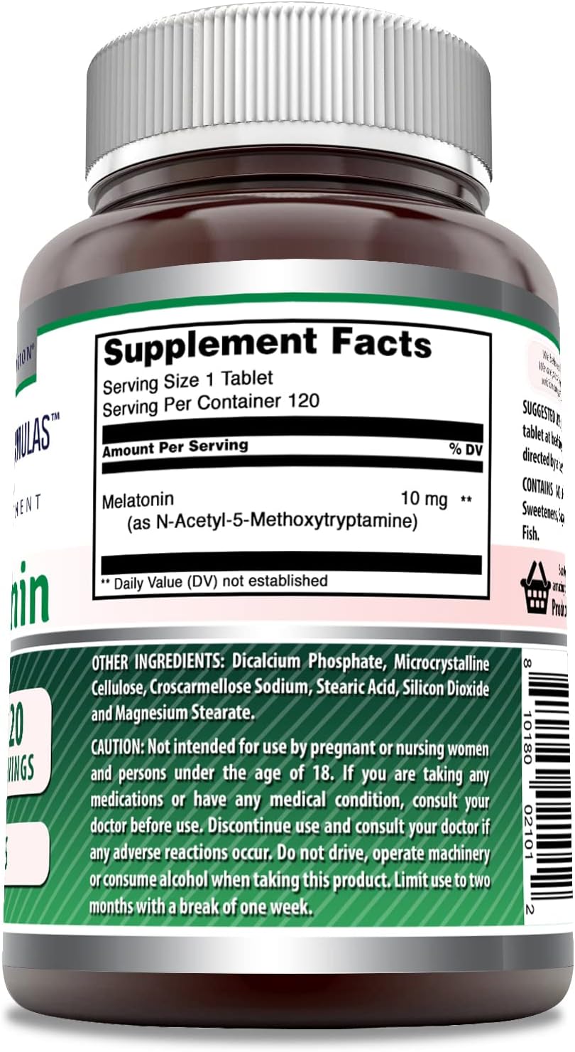 Amazing Formulas Melatonin Supplement | 10 Mg | 120 Tablets | Non-Gmo | Gluten-Free | Made In Usa
