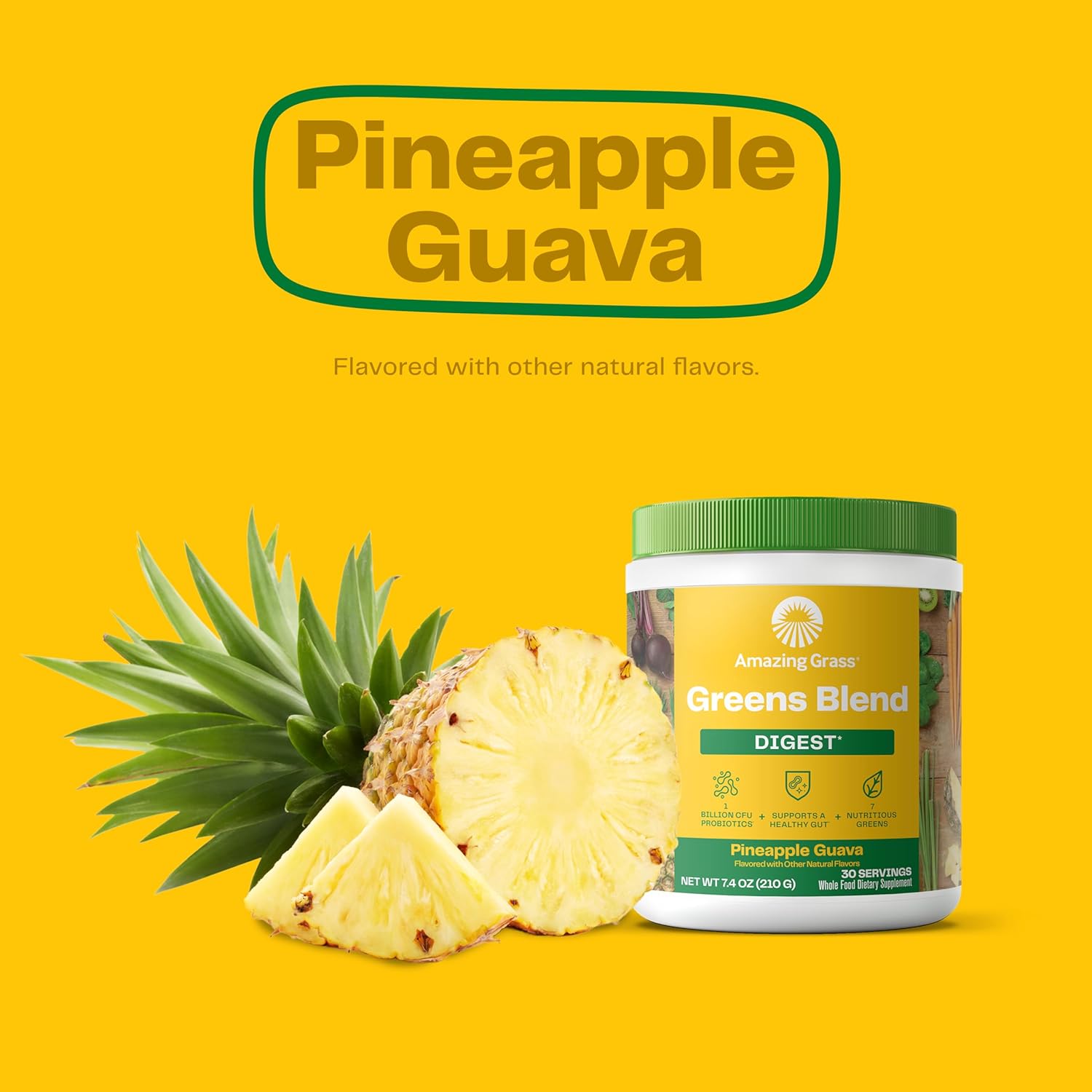 Greens Blend Digest Provides A Purposeful Combination Of Greens, Fruits, And Veggies Plus 1 Billions Cfu Probiotics To Support Digestive Health. All In A Fruity Pineapple Guava Flavor For A Convenient Way To Feel Amazing Every Day!