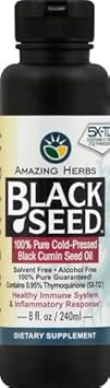 About this item BLACK SEED EXPERTS - Amazing Herbs Premium Black Seed Oil Formulation Delivers Natural Oil Intended for Oral Administration, Contains Omega Fatty Acids & 5x Thymoquinone for Health Benefits QUALITY INGREDIENTS - Using the Highest Quality, Organically-Grown, Pesticide-Free and Non-Irradiated Nigella Sativa Seeds Containing No Preservatives or Hidden Synthetic Chemicals NATURAL HEALTH BENEFITS - Black Cumin Oil Provides Immune Support, Aids in Digestive Health, Promotes Healthy Joints, Improves Brain Function that Restores Vitality & Improves Life Quality COLD-PRESSED IN THE USA - Amazing Herbs Utilizes Unique Screw-Type Presses that Gently Squeeze the Oil from the Seeds which Preserves the Oils Antioxidants and Retains a Higher Level of Nutrients OUR STORY - Original Manufacturers of Black Seed Health & Nutritional Supplements in the World & One of the First Nutraceutical Company's to Introduce it to the Health & Nutrition Industry in the US See more product details,BLACK SEED EXPERTS - Amazing Herbs Premium Black Seed Oil Formulation Delivers Natural Oil Intended for Oral Administration, Contains Omega Fatty Acids & 5x Thymoquinone for Health Benefits,QUALITY INGREDIENTS - Using the Highest Quality, Organically-Grown, Pesticide-Free and Non-Irradiated Nigella Sativa Seeds Containing No Preservatives or Hidden Synthetic Chemicals,NATURAL HEALTH BENEFITS - Black Cumin Oil Provides Immune Support, Aids in Digestive Health, Promotes Healthy Joints, Improves Brain Function that Restores Vitality & Improves Life Quality,COLD-PRESSED IN THE USA - Amazing Herbs Utilizes Unique Screw-Type Presses that Gently Squeeze the Oil from the Seeds which Preserves the Oils Antioxidants and Retains a Higher Level of Nutrients,OUR STORY - Original Manufacturers of Black Seed Health & Nutritional Supplements in the World & One of the First Nutraceutical Company's to Introduce it to the Health & Nutrition Industry in the US