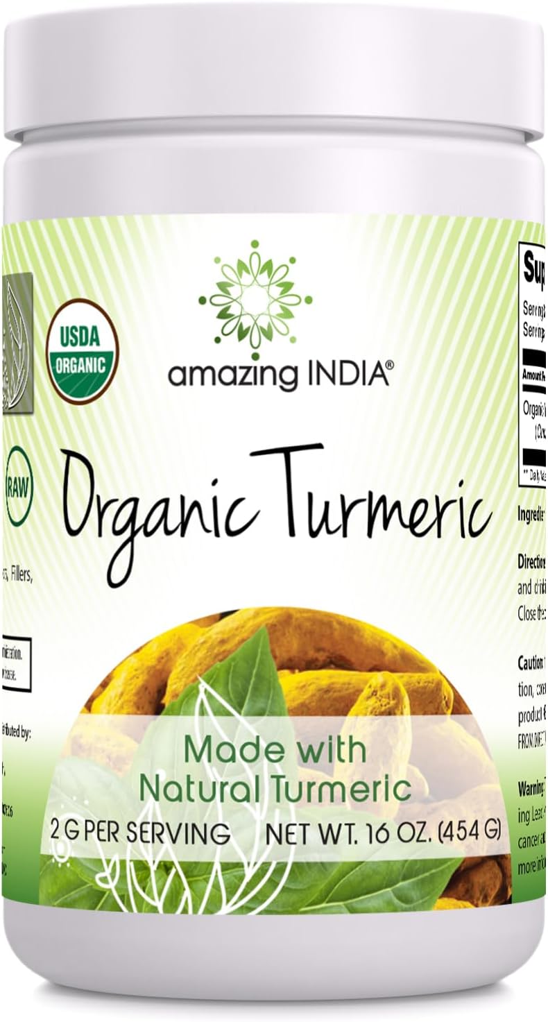 Amazing India USDA Certified Organic Turmeric Powder 16 Oz (1 Lb) Supplement | Non-GMO | Gluten Free | Made in USA