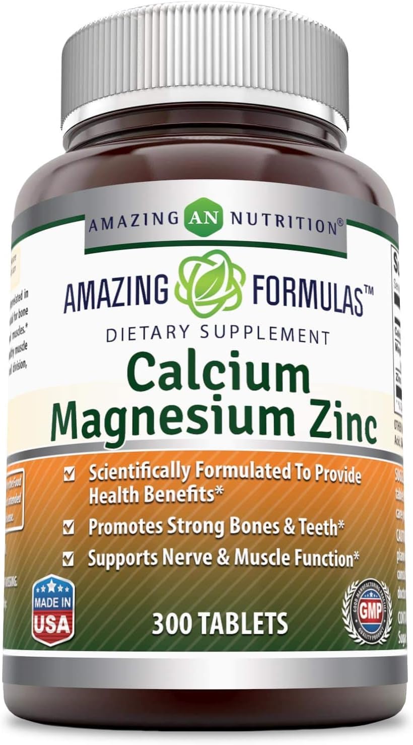 Amazing Nutrition Calcium Magnesium Zinc Dietary Supplement * 300 Tablets Per Bottle * (Calcium- 1000 Mg, Magnesium 400Mg - Zinc 25Mg Per Serving Of 3 Tablets)