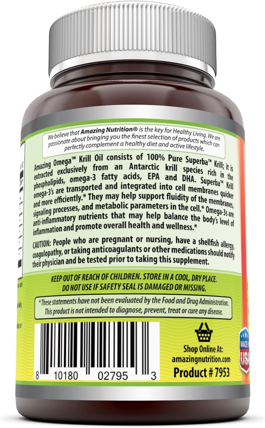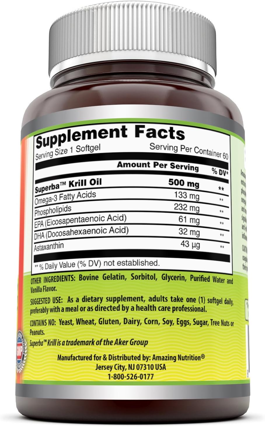 Amazing Omega Superba Krill Oil 1000 Mg Per Serving 60 Softgels (Non-Gmo,Gluten Free) - Omega 3 Fatty Acids With 120 Mg Epa & 56 Mg Dha