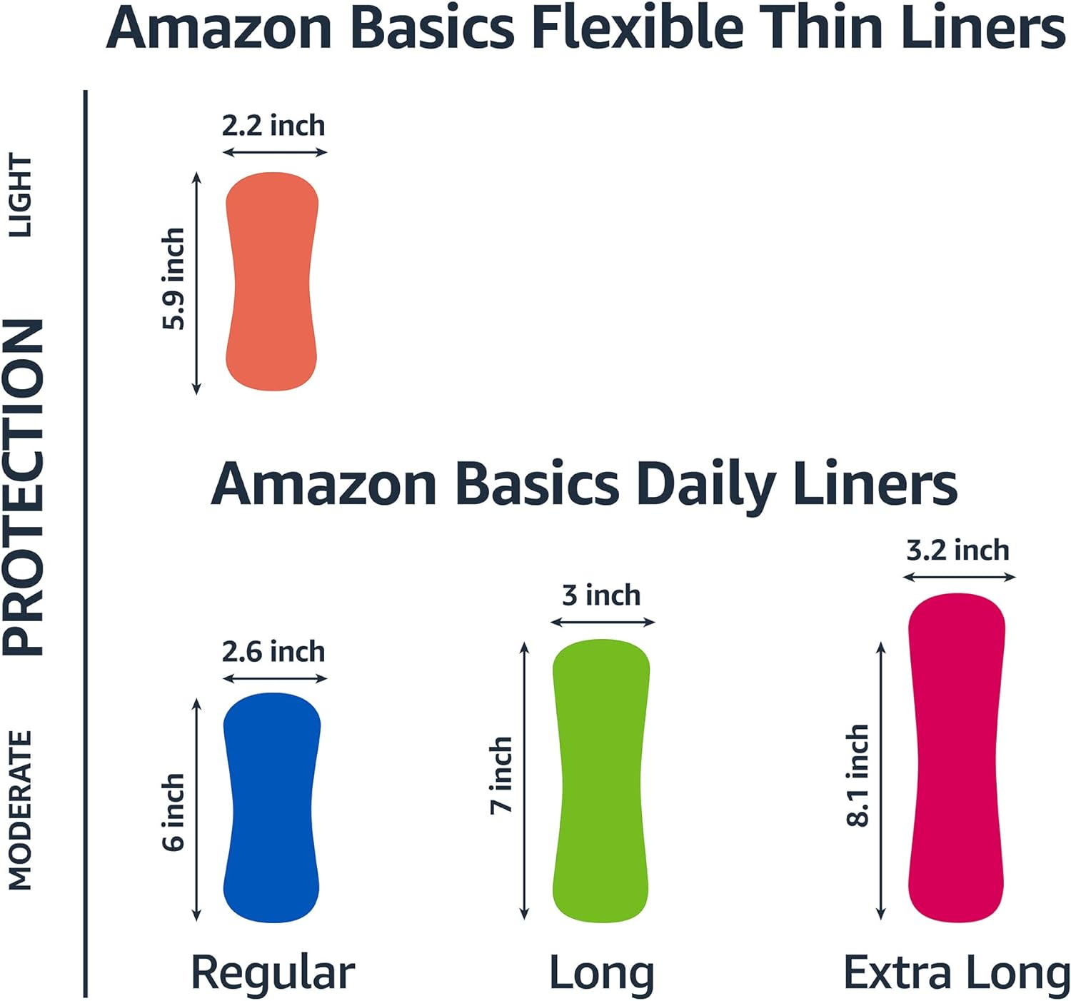 Amazon Basics Daily Pantiliner, Long Length, Pads For Women, Unscented, 120 Count (3 Packs Of 40) (Previously Solimo)