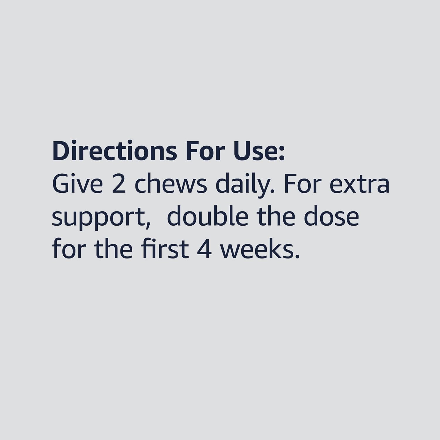Includes 1 resealable bag of 120 hip & joint bite-sized chews for dogs10Each chew has 200 mg of glucosamine HCl, 100 mg of MSM, and 100 mg of green-lipped mussel that contains amino acids10Includes Glucosamine and manganese to help maintain healthy joints10Includes MSM (methylsulfonylmethane) and chondroitin to provide building blocks to the joint cartilage10Direction for use: 1 chew per day for dogs up to 15 lbs, 2 chews per day for dogs 15-45 lbs, 3 chews per day for dogs 45-75 lbs, 4 chews per day for dogs over 75 lbs