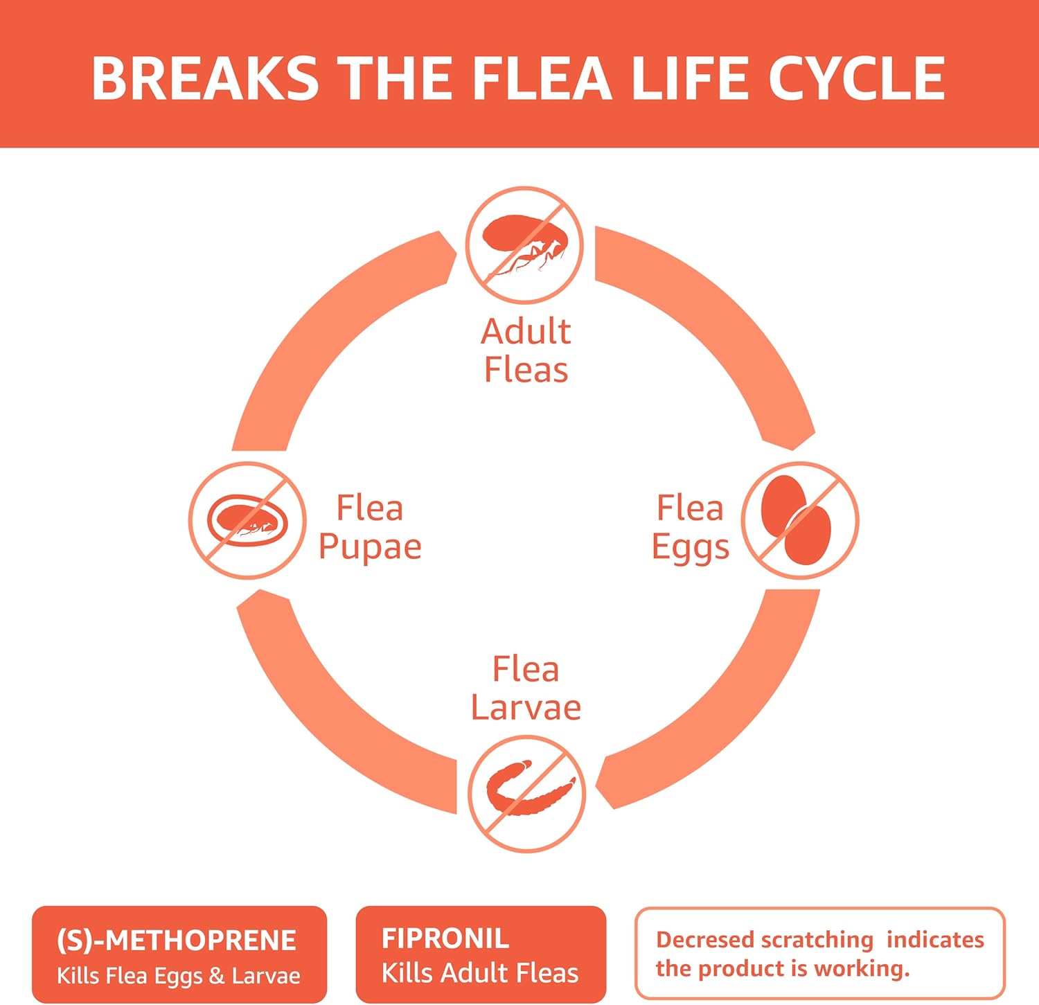 Active Ingredients Fipronil And (S)-Methoprene Prevent Flea Infestations By Killing Flea Eggs, Flea Larvae, Mosquitos, Biting Flies And Chewing Lice