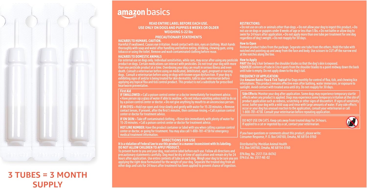 Amazon Basics Flea And Tick Topical Treatment For Small Dogs (5-22 Pounds), 3 Count (Previously Solimo)