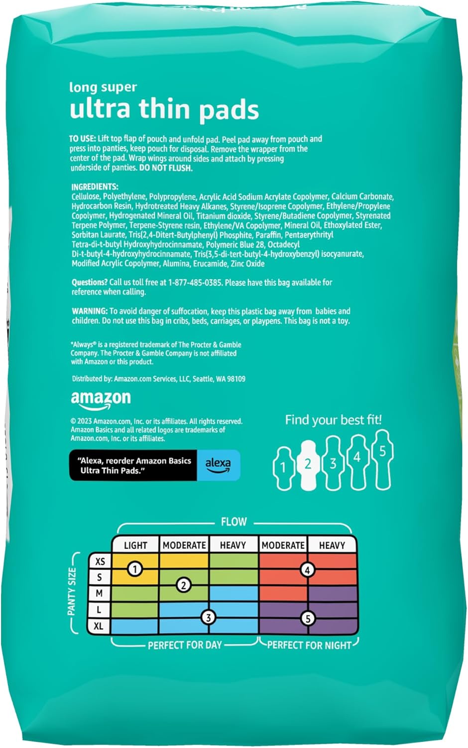 Amazon Basics Menstrual Pads For Women With Flexi-Wings, Long Length, Size 2, Super Absorbency, 32 Count (Pack Of 1)