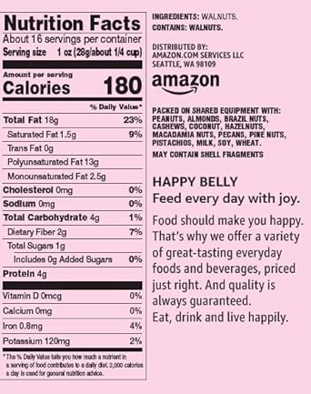 Amazon Brand - Happy Belly California Walnuts Halves And Pieces, 16 Ounce (Pack Of 2)