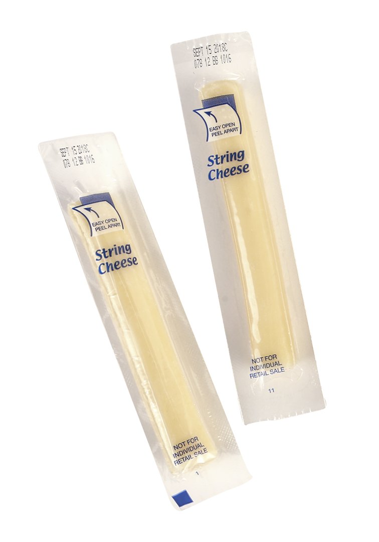 One 12-ounce bag of 12 individually wrapped mozzarella snack sticks