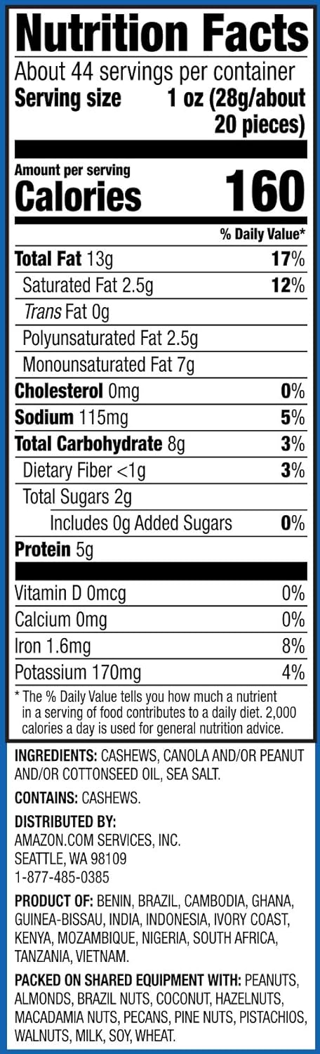 Amazon Brand - Happy Belly Roasted & Sea Salted Fancy Whole Cashews, 2.75 Pound (Pack Of 1)