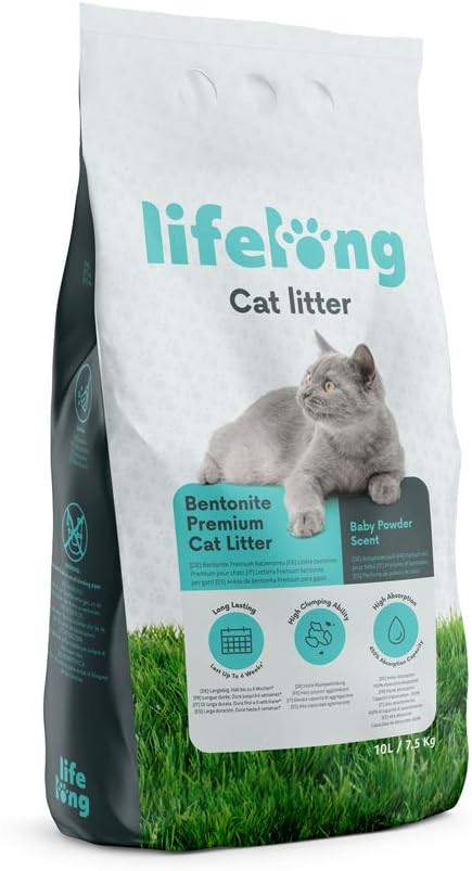 Amazon Brand - Lifelong Bentonite Premium Cat Litter Baby Powder Scent, 10L (Pack Of 1)5400606995840