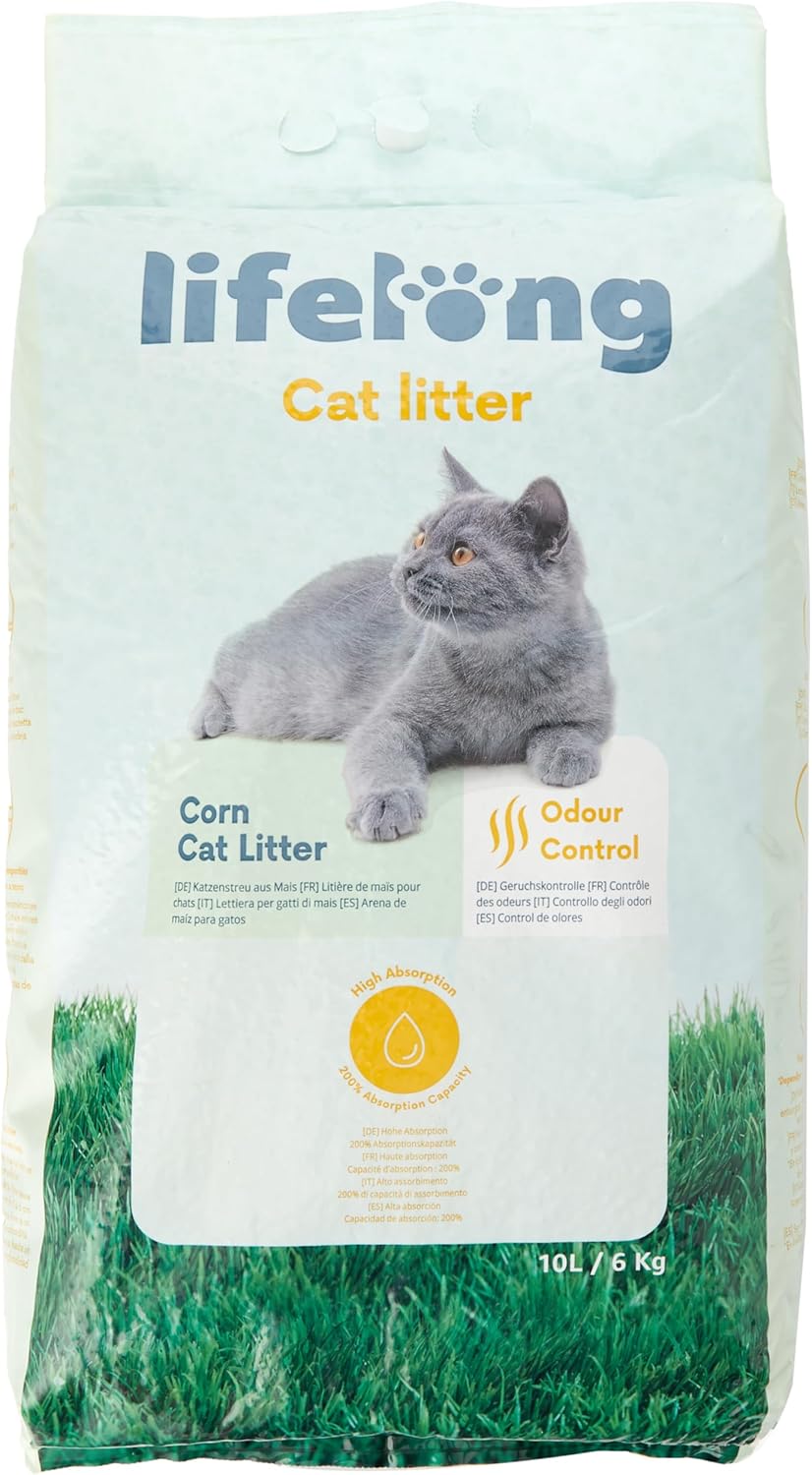 Amazon Brand - Lifelong Clumping Corn Cat Litter, Unscented, 10 L (Pack Of 1)5400606995864