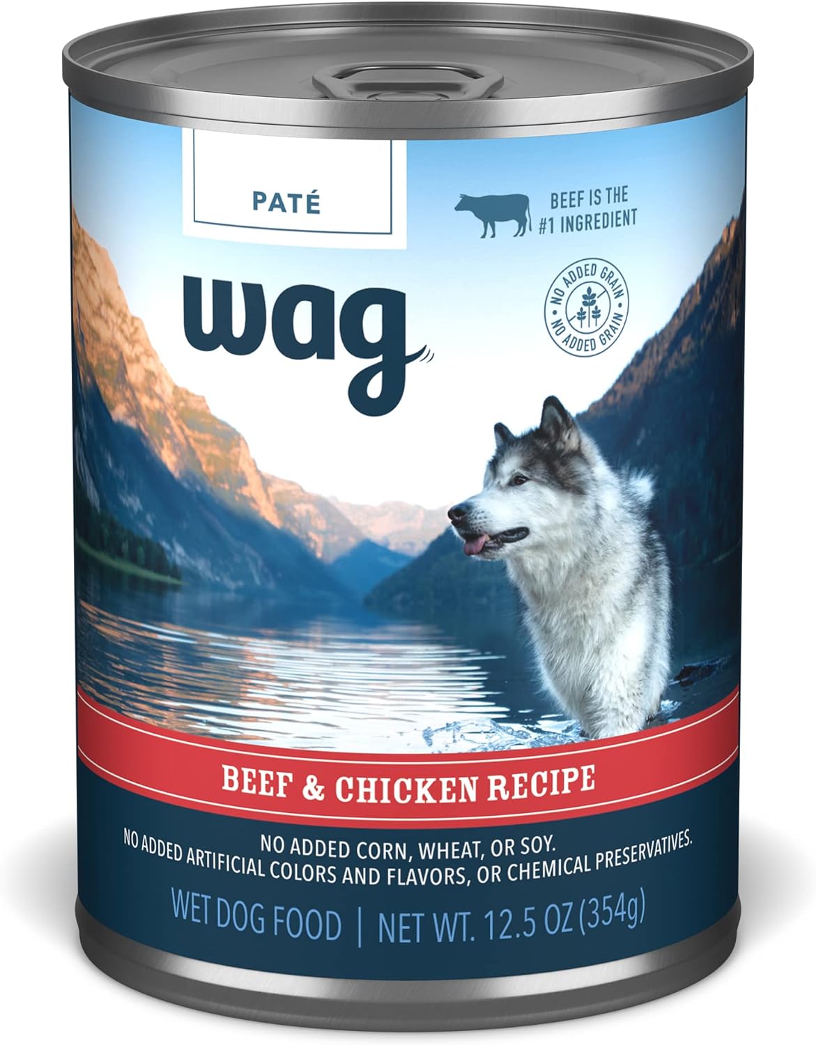 Amazon Brand - Wag Pate Canned Dog Food, Beef & Chicken Recipe, 12.5 Oz Can (Pack Of 12)