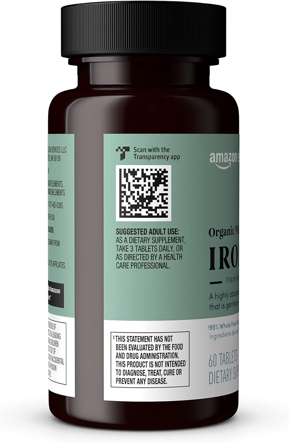 Amazon Elements Organic Whole Food Iron, 60 Tablets