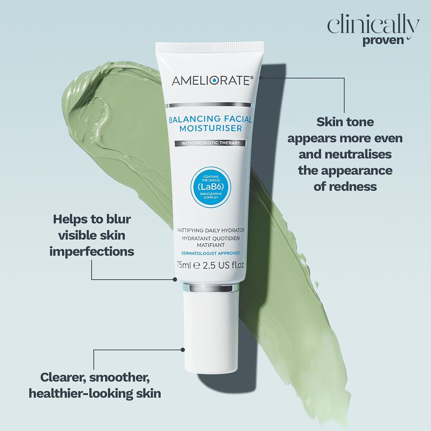 Ameliorate Balancing Facial Moisturiser 75Ml | Lab6, Lactic Acid, Polysaccharides | Dermatologically Tested