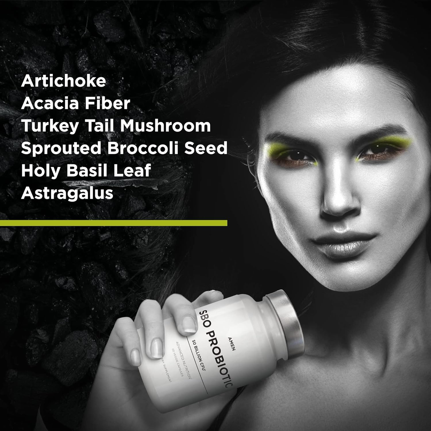 About this item High-Potency Probiotic Blend: Amen SBO Probiotic contains 50 billion CFUs** per serving with six different probiotic strains, including Saccharomyces boulardii, Bacillus subtilis, Bacillus coagulans, and Bacillus clausii, suitable for both women and men. Organic Prebiotics: Features a blend of organic botanicals, fibers, and minerals such as organic sprouted broccoli seed, artichoke, holy basil, organic turkey tail mushroom, and organic acacia fiber. Shelf-Stable Formula: This probiotic supplement is shelf-stable and doesn't require refrigeration, making it convenient for daily use. Dietary Friendly: These probiotics for women and men pills are vegan, non-GMO, dairy-free, soy-free, and gluten-free. These pre and probiotics are suitable for various dietary preferences and restrictions. Manufactured in the USA: Amen SBO Probiotic supplement is manufactured in the USA with global ingredients in a cGMP-certified facility for quality and purity. › See more product details,High-Potency Probiotic Blend: Amen SBO Probiotic contains 50 billion CFUs** per serving with six different probiotic strains, including Saccharomyces boulardii, Bacillus subtilis, Bacillus coagulans, and Bacillus clausii, suitable for both women and men,Organic Prebiotics: Features a blend of organic botanicals, fibers, and minerals such as organic sprouted broccoli seed, artichoke, holy basil, organic turkey tail mushroom, and organic acacia fiber,Shelf-Stable Formula: This probiotic supplement is shelf-stable and doesn't require refrigeration, making it convenient for daily use,Dietary Friendly: These probiotics for women and men pills are vegan, non-GMO, dairy-free, soy-free, and gluten-free. These pre and probiotics are suitable for various dietary preferences and restrictions,Manufactured in the USA: Amen SBO Probiotic supplement is manufactured in the USA with global ingredients in a cGMP-certified facility for quality and purity