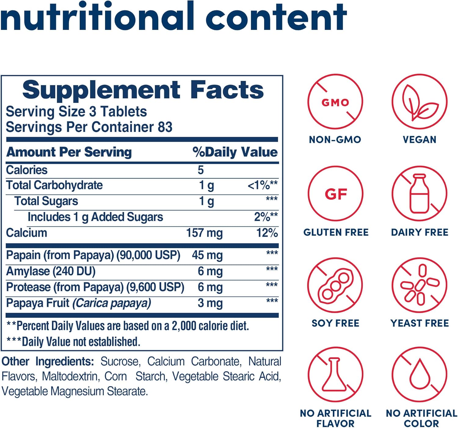 About this item Serving Size - 3 chewable tablets Does Not Contain: Yeast, wheat, gluten, milk or milk derivatives, lactose, preservatives, artificial color, soy, sodium (less than 5 mg per serving). See more product details,Serving Size - 3 chewable tablets,Does Not Contain: Yeast, wheat, gluten, milk or milk derivatives, lactose, preservatives, artificial color, soy, sodium (less than 5 mg per serving)