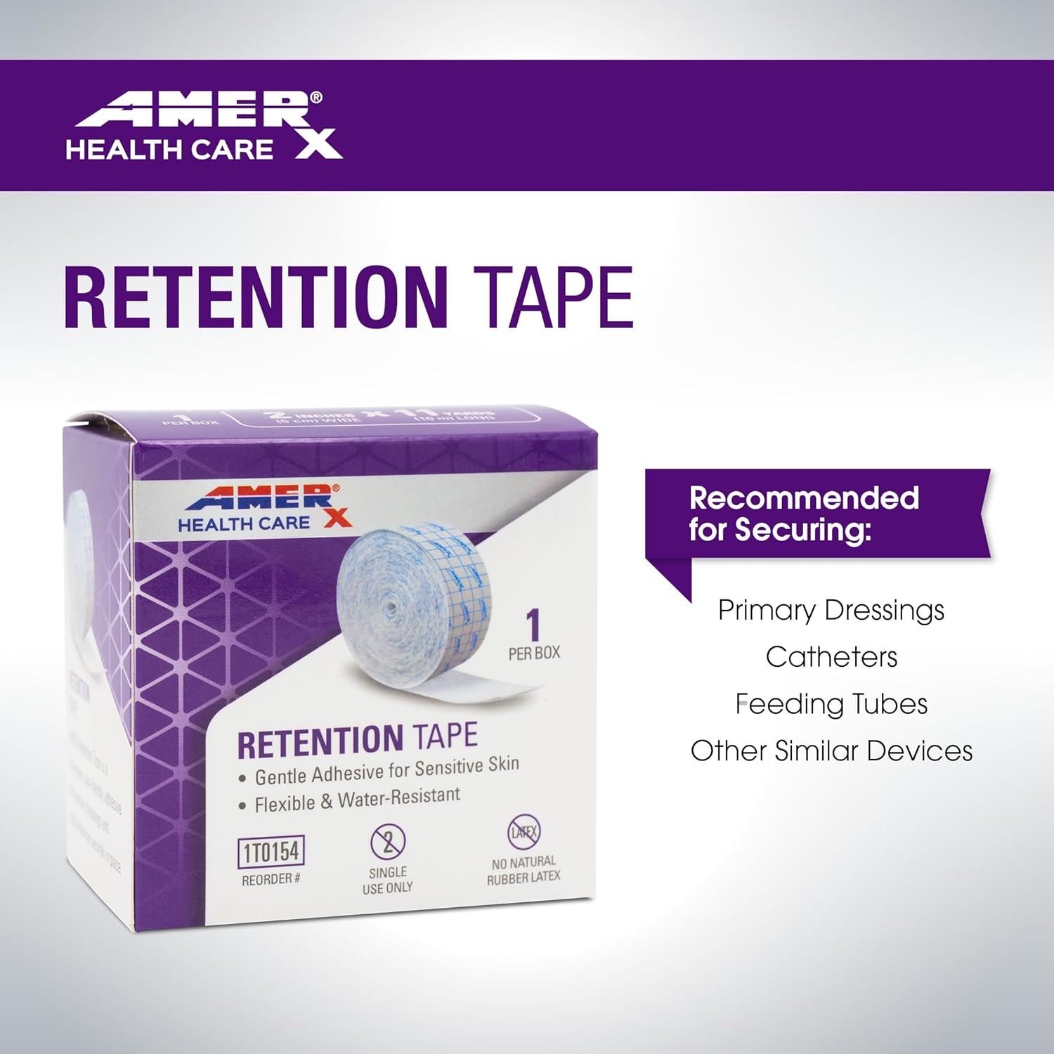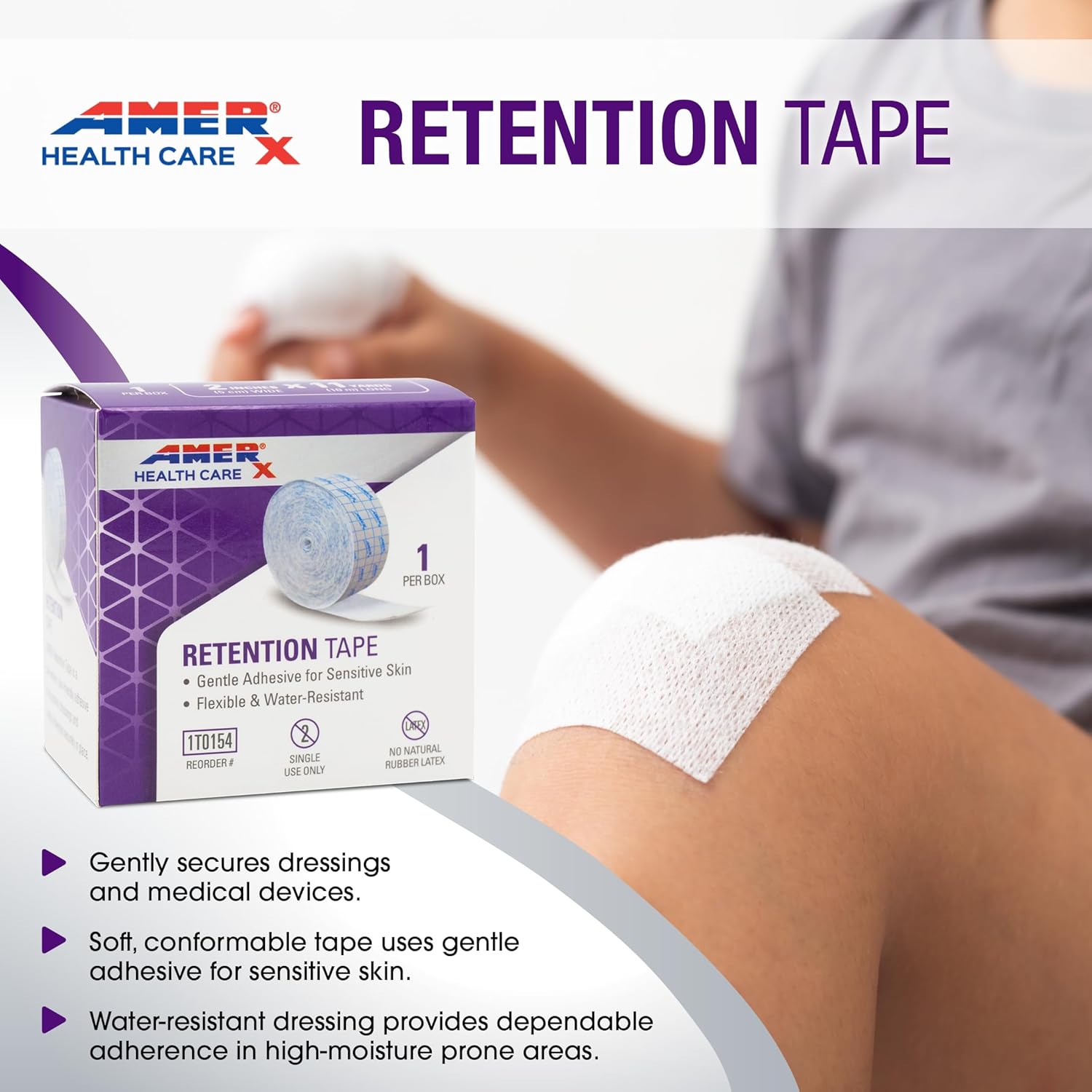Amerx Retention Tape - Gentle Adhesive Dressing To Secure Primary Wound Dressings, Catheters, Feeding Tubes