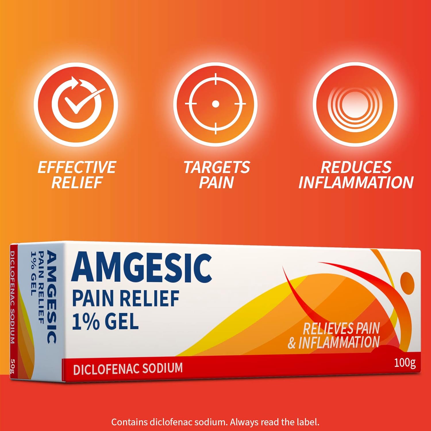 Amgesic Pain Relief 1% Gel 100G– Relief Diclofenac Gel – Anti-Inflammatory Gel For Back Pain Relief, Muscle Aches, Stiff Joints And Swelling
