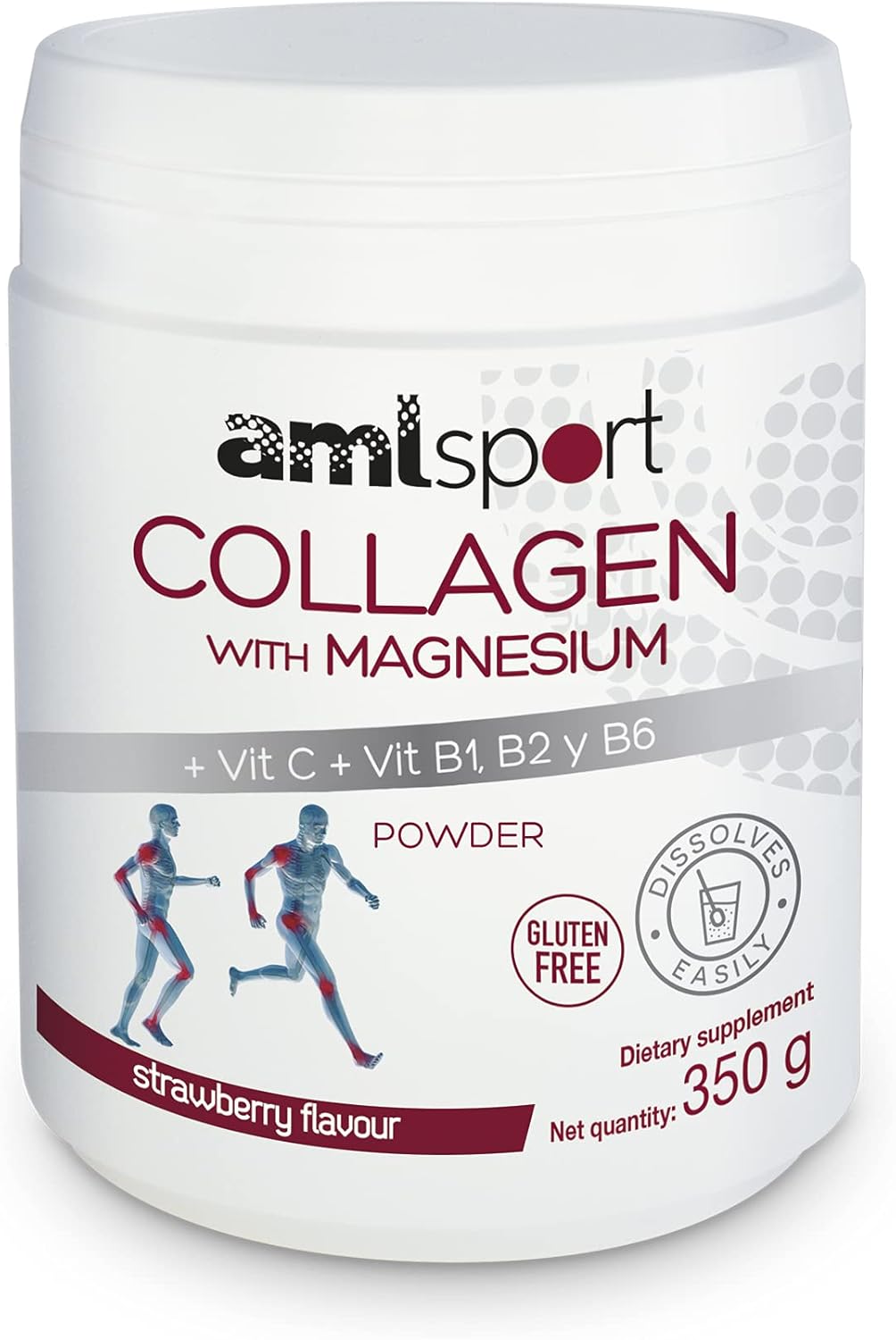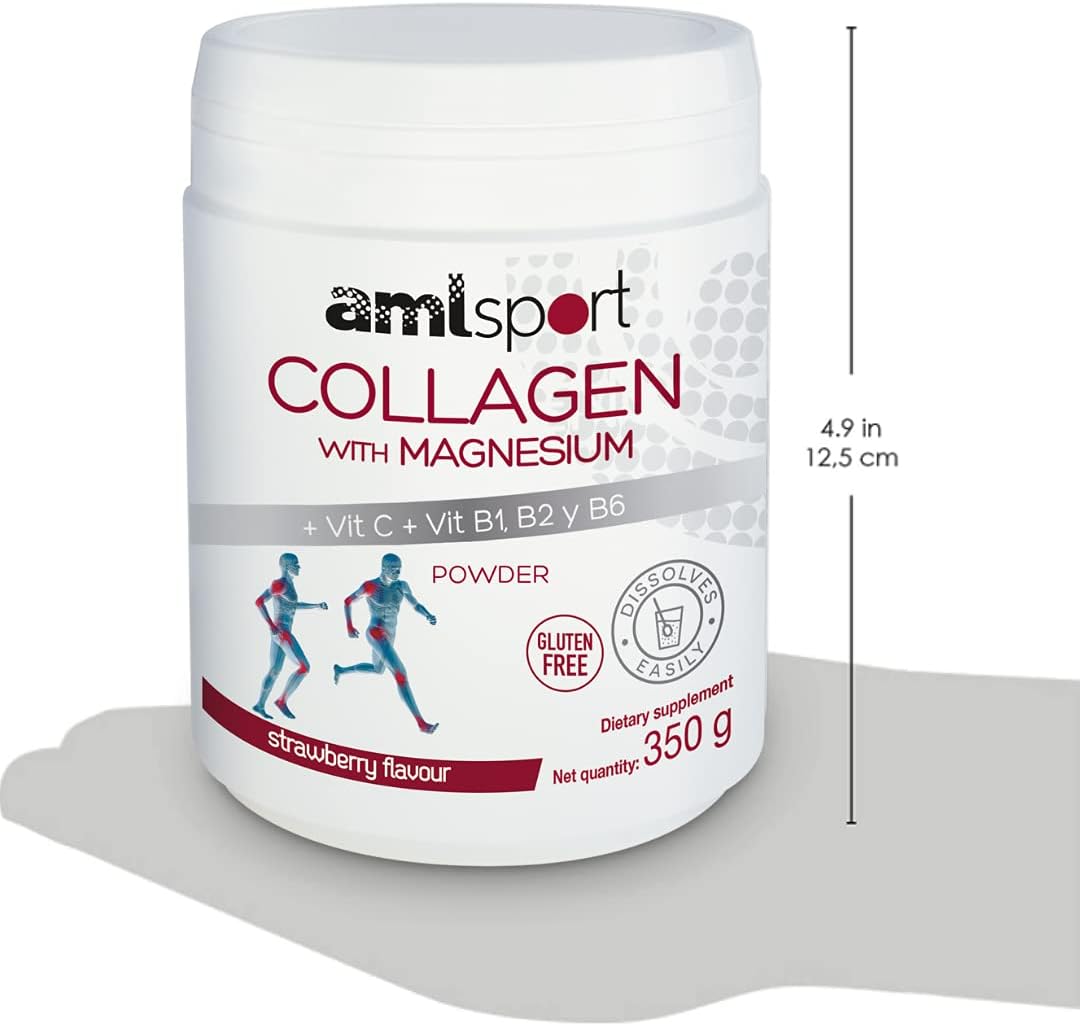 Aml Sport - Collagen With Magnesium + Vit C, B1, B2 And B6 Powder - 350G (Strawberry Flavour). Tissue Regenerator With Type 1 &2 Collagen. Gluten Free. Sugar Free