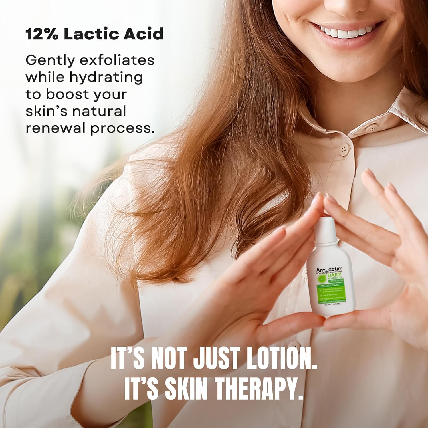 2-in-1 exfoliator and moisturizing lotion: AmLactin uses lactic acid to boost healthy skin renewal through gentle exfoliation while providing intense hydration, resulting in restored, radiant skin