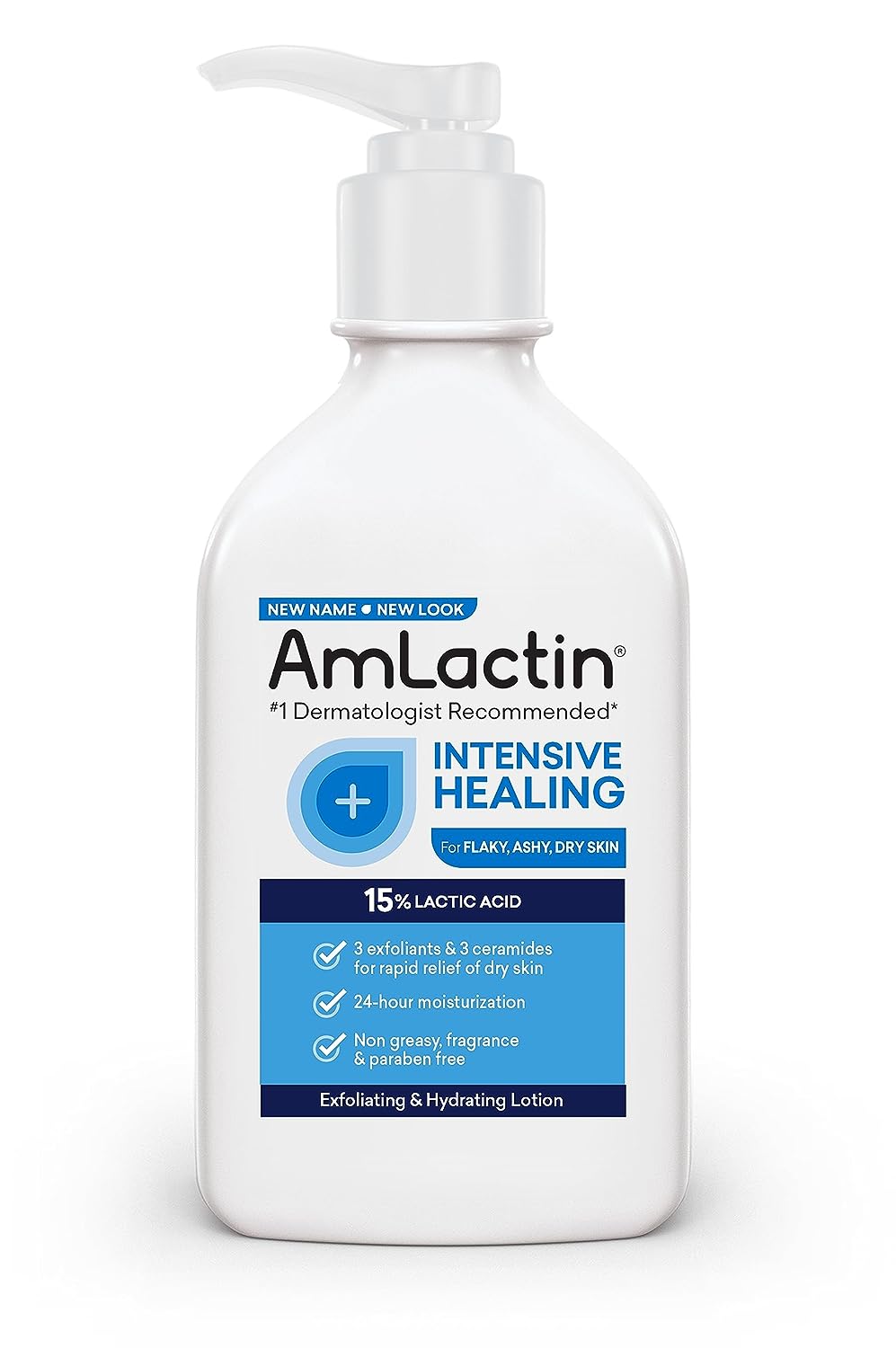 Experience 24-hour relief from dryness with AmLactin Rapid Relief Restoring Body Lotion. Formulated with 15 percent lactic acid, plus three ceramides, this exfoliant lotion helps lock in moisture for visibly soft skin. A non-greasy body moisturizer lotion, AmLactin Rapid Relief Restoring Moisturizing Lotion for dry skin is also fragrance-free and paraben-free, and instantly transforms your skin's appearance for visibly soft, youthful-looking skin. AmLactin dry skin lotion helps relieve symptoms of skin conditions such as keratosis pilaris and dry skin and comes in a convenient pump bottle for easy application! Help relieve dry skin with AmLactin moisturizers, the Number 1 Dermatologist Recommended Moisturizer Brand with Lactic Acid
