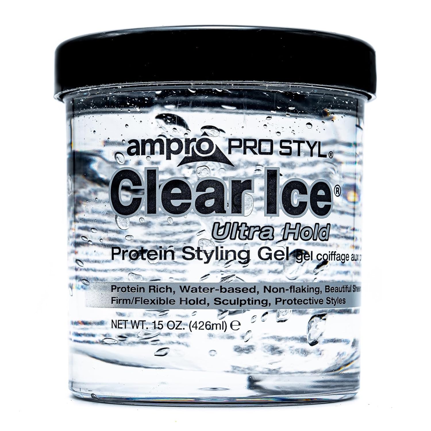 Pro Styl Clear Ice Styling Gel is an alcohol-free, protein-rich styling gel that is specially created to give you the additional firm grip you need to create the hair styles you want. It is excellent for all hair colors and textures!,STRENGTHENS HAIR. Crystal clear gel allows for versatile styling on all hair colors and is also great for all hair textures. This gel is rich in soy protein to strengthen and protect hair during styling,PROTEIN RICH FORMULA. Strengthen your hair with this protein-enriched gel, to boost your hair's resilience and leave it looking and feeling healthy. It protects your hair during styling and is great for natural hair and textured styles,GOODBYE FLAKES AND GREASE. Enjoy soft, manageable waves and curls by using this non-greasy gel. The moisturizing formula is non-flaking and distributes easily throughout your hair, to help create any hairstyle on any hair texture,A LEGACY PRODUCT LINE. Ampro, which stands for American Products, is a leading beauty manufacturer, established since 1947. We produce top-quality personal care products for hair, body, and skin, free of alcohol, parabens, sulfates, and dyes,MULTICULTURAL HAIR CARE PRODUCTS. Ampro is continuously expanding its hair care line by adding exciting new products, like our Shine 'n Jam Magic Fingers, the Ampro Pro Styl Olive Oil Styling Gel, and our newest kid's line, Ampro's Beautiful Child