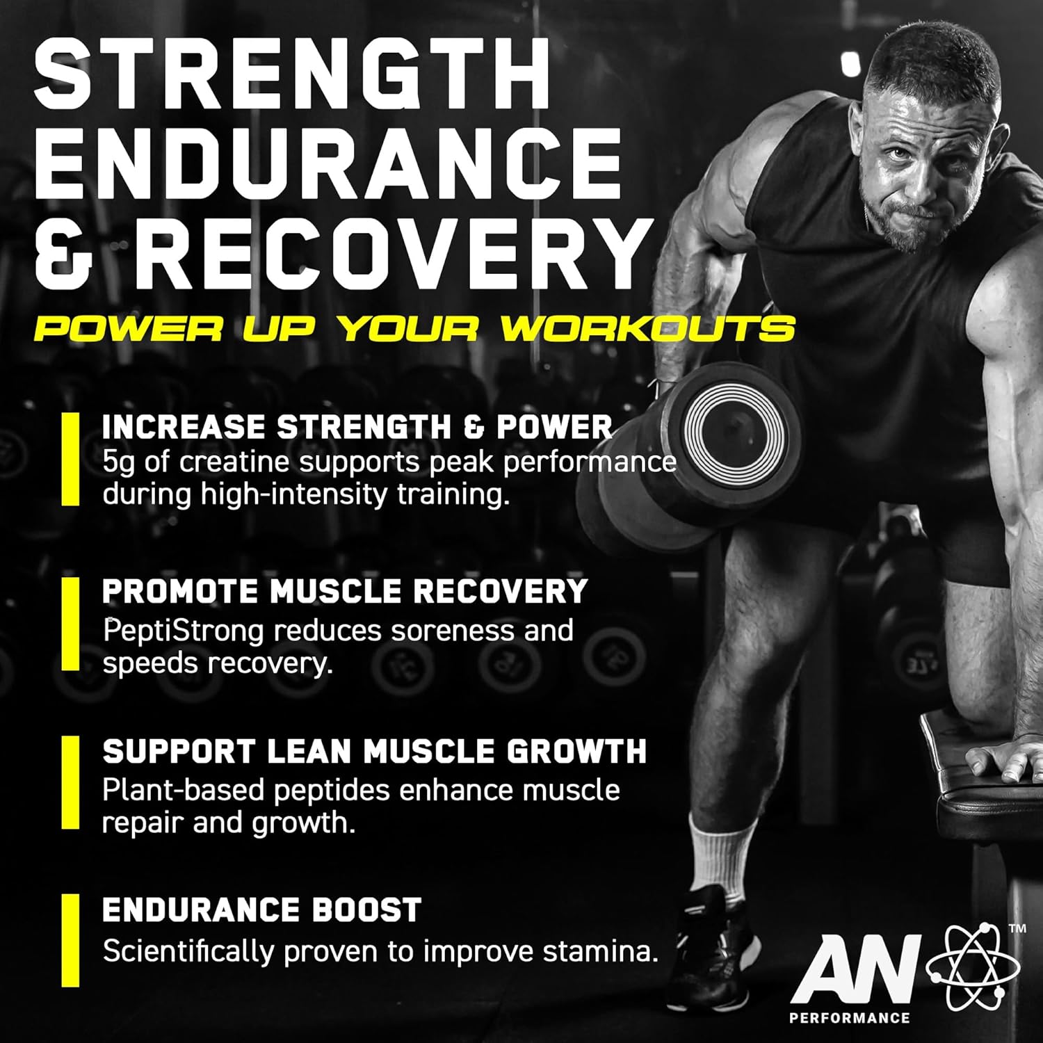 An Performance Creatine + Peptide Powder 5G Creatine Monohydrate And 2.4G Peptistrong Per Serving For Strength Endurance Recovery And Muscle Growth Unflavoured (444G - 60 Servings)