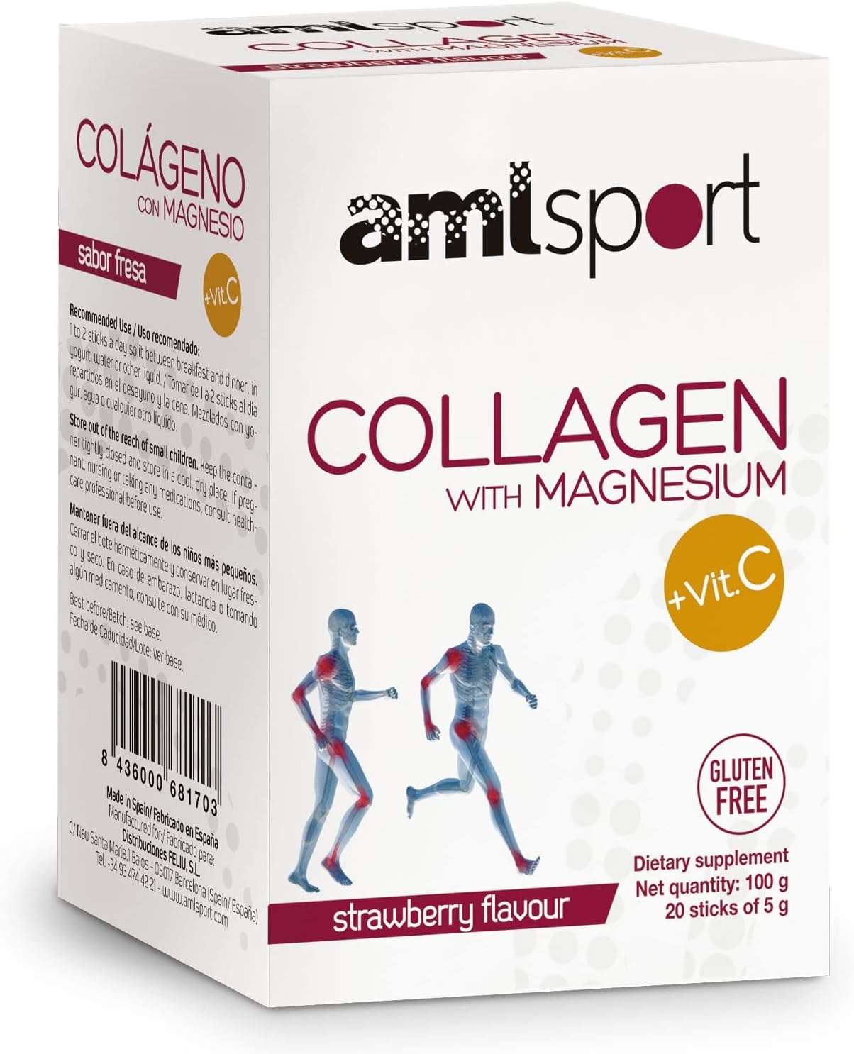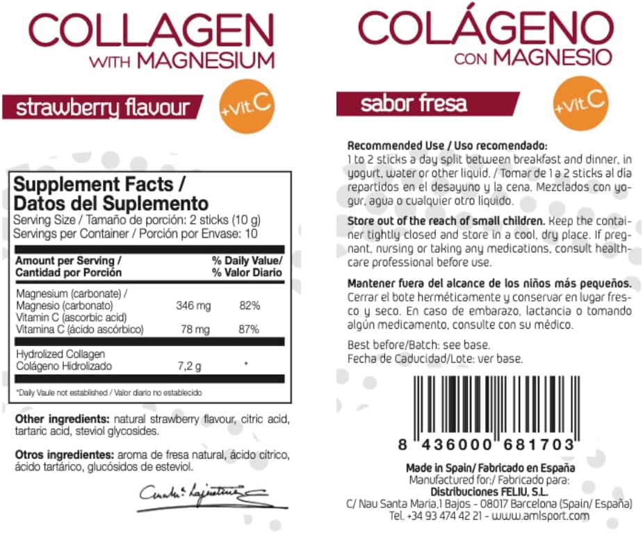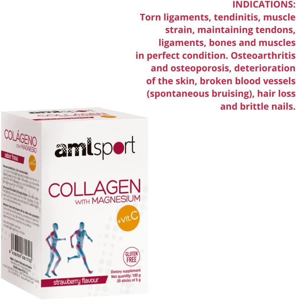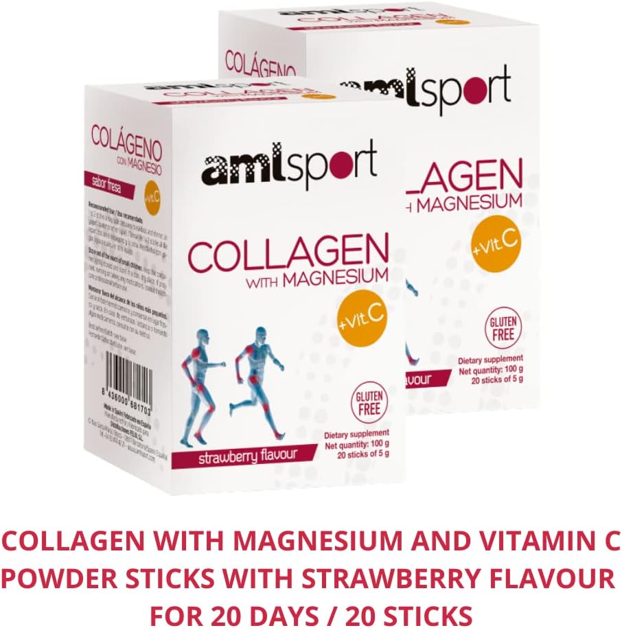 Ana Mar¡A Lajusticia Aml Sport - Collagen With Magnesium With Vitamin C Sticks - Strawberry Flavour - Travel Pack -20 Sticks. Hydrolized Collagen. Dairy, Gluten And Sugar Free