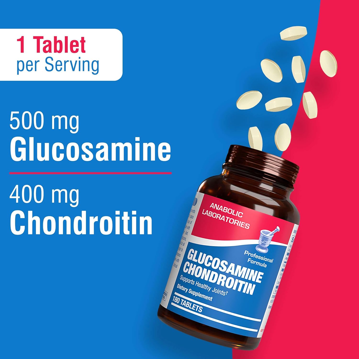 Anabolic Laboratories Glucosamine Chondroitin Tablets - 180 Nutritional Supplements For Joint Health - Contains 500 Mg Glucosamine Sulfate Potassium Chloride And 40 Mg Chondroitin Sulfate