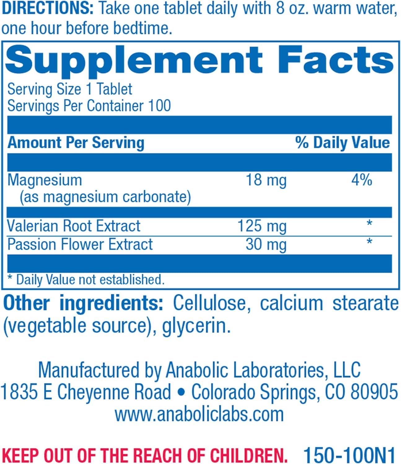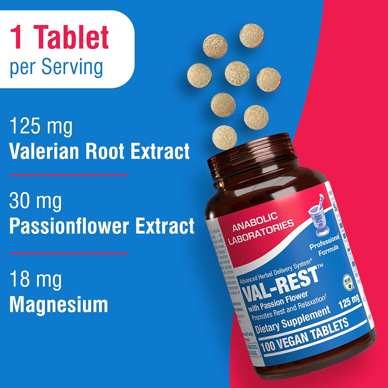 DESCRIPTION : Anabolic Laboratories Valerian Root Sleep Aid - 100 Vegan Tablets for Rest and Relaxation - Valerian Root, Passion Flower, and Magnesium Supplement for Women and Men - Val-Rest