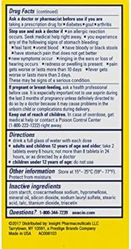 BULLET POINTS  :   1 >  Contains 2 ingredients: aspirin (NSAID) and caffeine, which work together to deliver fast pain relief