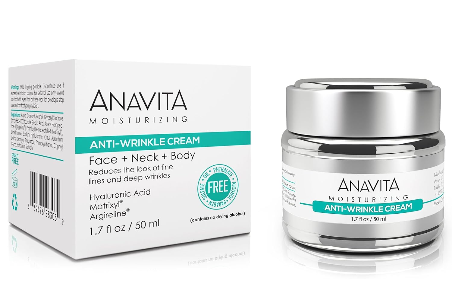 Anavita Moisturizing Anti Wrinkle Anti Aging Cream W/Peptide & Hyaluronic Acid - Day Night - Facial Fine Lines Wrinkles Elasticity Skin Tone - Face Neck Decollete Moisturizer For Women Men 1.7 Fl Oz