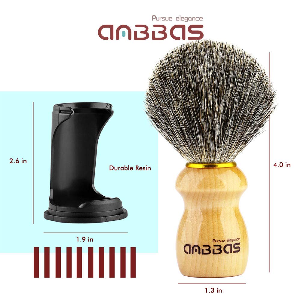 Simple, fast, fashion shaving, make your life exquisite from face! Note: please pay attention to check item detail size before ordering Size(Hair/Handle): approx. 5/5cm-1.97/1.97 inch Diameter of Handle Knot/Bottom: approx. 2.6/3.5cm-1.02/1.38 inch Brush Stand Height: 6.6cm-2.60 inch Holder Base Diameter: 4.8cm-1.89 inch Opening for Brush: 2.8cm-1.10 inch Packaged Includes: 1*Shaving Brush, 1*Shaving Stand Holder, 1*Package Box How to shave: 1. Wetting: clean your razor, hands and face(especially the part of beard), could spread in your face 3 minutes with the hot wet towel 2. Shaving Foam: use shaving brush circling painting much foam of shaving soap/foam on your beard, the foam could soften the beard hair, and protect your skin 3. Shaving: firstly, shaving your beard according to the texture, then reverse direction, from sparse to dense part, so that the dense part would be softened more longer Instructions for use: 1. Washing the brush well with water after using. 2. Never keep the brush wet for long. 3. Do not use strong disinfectants or detergents - water is sufficient,TECHNOLOGY: Highest cost performance! Handcrafted production,absolute pure badger hair,with wonderful shape and no shedding,little smell when fist use,design with traditional wood handle,CHARACTER: The badger hair is silky and firm, as water absorbing and heat retention capability, works well with all shaving soaps and foam, gel or cream, perfect for thick, glossy lathering, easy to clean, and fairly quick to dry,PURPOSE: Perfect gift for your father, husband, boyfriend or for any traditional shaving; Stylish in the bathroom, necessory accesory for daily personal health care,TIPS: Recommend thoroughly rinse the shaving brush, shake and hang it on shaving stand to dry. The longevity of a quality badger hair shaving brush is directly related to the care and respect it is given,PACKAGE CONTENT: 1 Badger Brush for Shave, 1 Shaving Brush Stand, 1 Package Box, Anbbas complete service system