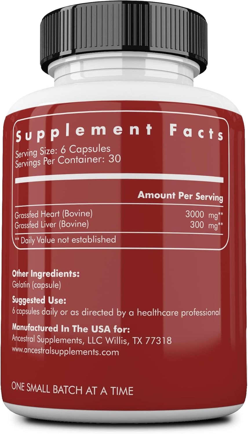 Ancestral Supplements Grass Fed Beef Heart Supplement, 3300Mg, Coq10 Supplement Supports Heart And Mitochondrial Health, Non-Gmo, 180 Capsules