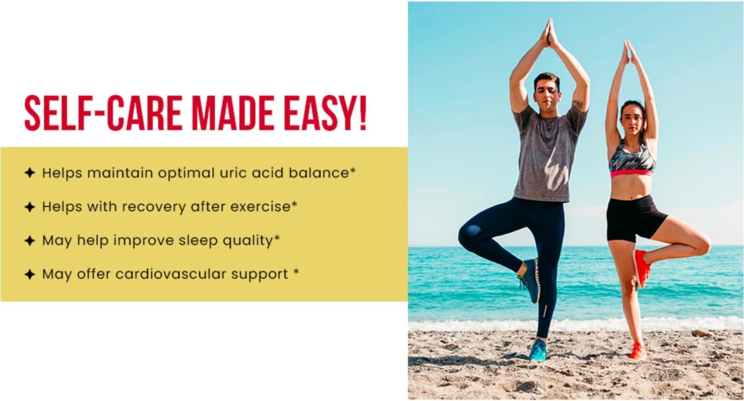 About this item May Support Joint Flexibility: Our joint support supplement for men and women is specifically formulated to harness the natural inflammatory-reducing properties of tart cherries, helping provide effective relaxation in joint pain and discomfort. By targeting inflammation at its source, this supplement may help improve overall joint well-being and mobility. May Support Digestion: Our Tart Cherry with celery seeds supplement may help in digestion. Packed with antioxidants and fiber, tart cherries help in maintaining a balanced digestive system, may reduce bloating, and support gut welfare. May Support Sleep & Vitality: Our tart cherry sleep support supplement may help you experience the restorative power of tart cherries. By naturally improving melatonin levels, it may support better sleep patterns, helping you wake up refreshed and energized. The added vitality helps ensure you stay active and ready to tackle each day with renewed vigor. Natural Antioxidant: Rich in anthocyanins, our Tart Cherry capsules may help serve as a potent antioxidant source, combating free-radicals in the body. This antioxidative supplement helps protect your cells and tissues from damage, supporting long-term well-being and vitality. How to Consume: The easy-to-swallow vitality support capsules are made to be quickly and effectively absorbed in the body. Take two capsules daily with a full glass of water. The supplement for immune support for adults is suitable to consume for both men and women.  See more product details,May Support Joint Flexibility: Our joint support supplement for men and women is specifically formulated to harness the natural inflammatory-reducing properties of tart cherries, helping provide effective relaxation in joint pain and discomfort. By targeting inflammation at its source, this supplement may help improve overall joint well-being and mobility,May Support Digestion: Our Tart Cherry with celery seeds supplement may help in digestion. Packed with antioxidants and fiber, tart cherries help in maintaining a balanced digestive system, may reduce bloating, and support gut welfare,May Support Sleep & Vitality: Our tart cherry sleep support supplement may help you experience the restorative power of tart cherries. By naturally improving melatonin levels, it may support better sleep patterns, helping you wake up refreshed and energized. The added vitality helps ensure you stay active and ready to tackle each day with renewed vigor,Natural Antioxidant: Rich in anthocyanins, our Tart Cherry capsules may help serve as a potent antioxidant source, combating free-radicals in the body. This antioxidative supplement helps protect your cells and tissues from damage, supporting long-term well-being and vitality,How to Consume: The easy-to-swallow vitality support capsules are made to be quickly and effectively absorbed in the body. Take two capsules daily with a full glass of water. The supplement for immune support for adults is suitable to consume for both men and women