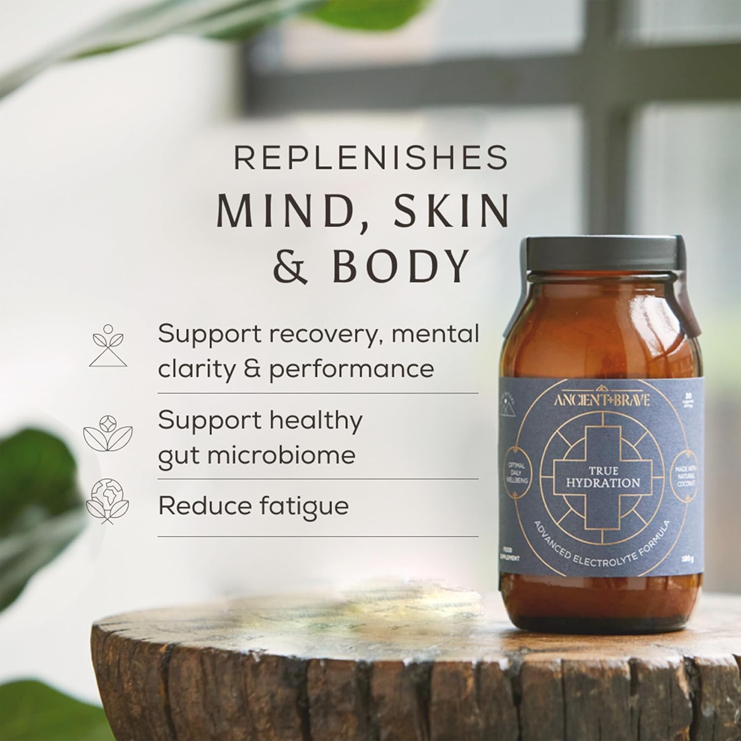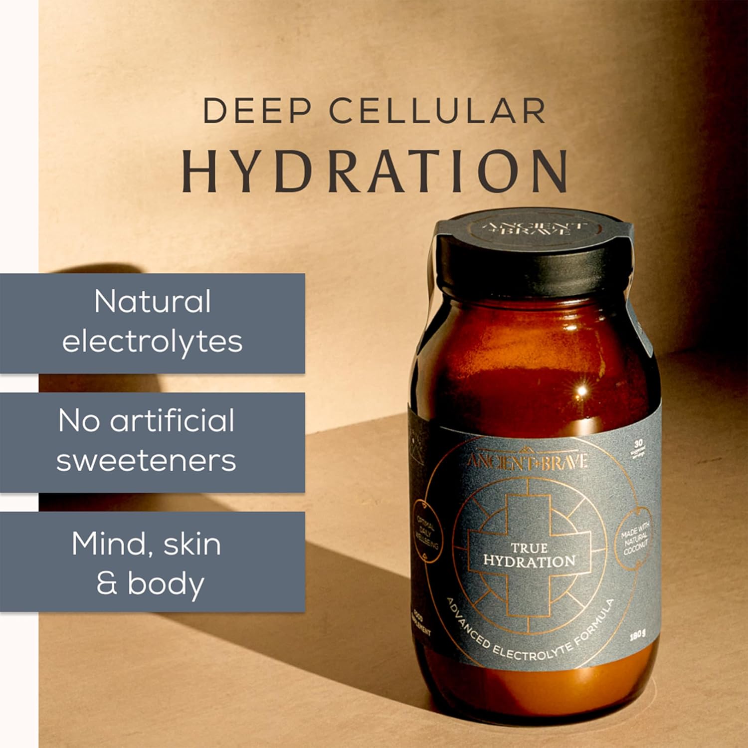 Ancient + Brave True Hydration 180G Jar - Electrolytes Powder With Magnesium, Potassium & Chromium - Natural Coconut Water Electrolyte Powder For Morning Hydration, Workout Recovery & Fasting Support