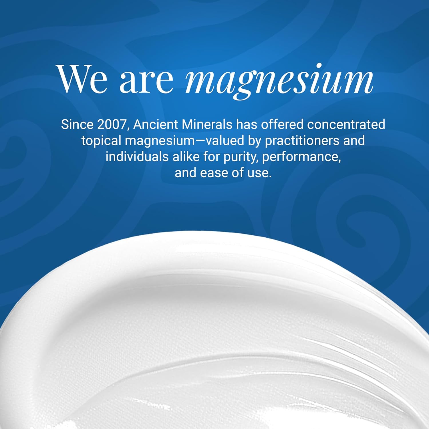 About this item Gentle, Skin-Loving Magnesium Blend - Crafted with genuine Zechstein magnesium chloride, this non-greasy lotion combines organic oils, shea butter, and hyaluronic acid to hydrate and nourish skin—ideal for daily rituals. Genuine Zechstein Source, Trusted Quality - Sourced from the ancient Zechstein seabed over a mile underground, our magnesium lotion reflects the purity and care Ancient Minerals has been known for since 2007. Nutrient-Rich Hydration for All Skin Types - With organic squalane, almond, and apricot oils, this deeply moisturizing lotion absorbs easily, leaving skin soft, supple, and replenished—no greasy residue, just silky comfort. Smooth Application, Simple Self-Care - Each pump delivers approximately 30mg of elemental magnesium in a light, fast-absorbing formula. Great for legs, feet, or full-body use as part of your daily body care routine. The Topical Magnesium Original - Ancient Minerals set the standard in topical magnesium. Our original magnesium lotion remains a go-to for clean, elemental skin nourishment powered by nature and backed by quality. See more product details,Gentle, Skin-Loving Magnesium Blend - Crafted with genuine Zechstein magnesium chloride, this non-greasy lotion combines organic oils, shea butter, and hyaluronic acid to hydrate and nourish skin—ideal for daily rituals,Genuine Zechstein Source, Trusted Quality - Sourced from the ancient Zechstein seabed over a mile underground, our magnesium lotion reflects the purity and care Ancient Minerals has been known for since 2007,Nutrient-Rich Hydration for All Skin Types - With organic squalane, almond, and apricot oils, this deeply moisturizing lotion absorbs easily, leaving skin soft, supple, and replenished—no greasy residue, just silky comfort,Smooth Application, Simple Self-Care - Each pump delivers approximately 30mg of elemental magnesium in a light, fast-absorbing formula. Great for legs, feet, or full-body use as part of your daily body care routine,The Topical Magnesium Original - Ancient Minerals set the standard in topical magnesium. Our original magnesium lotion remains a go-to for clean, elemental skin nourishment powered by nature and backed by quality