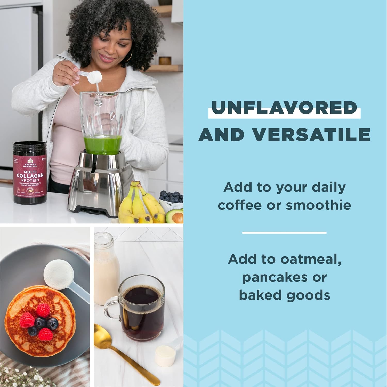 Ancient Nutrition Collagen Powder Protein With Probiotics, Multi Collagen Protein, Unflavored, 60 Servings, Hydrolyzed Collagen Peptides Supports Skin And Gut Health, Joint Supplement, 21.38Oz