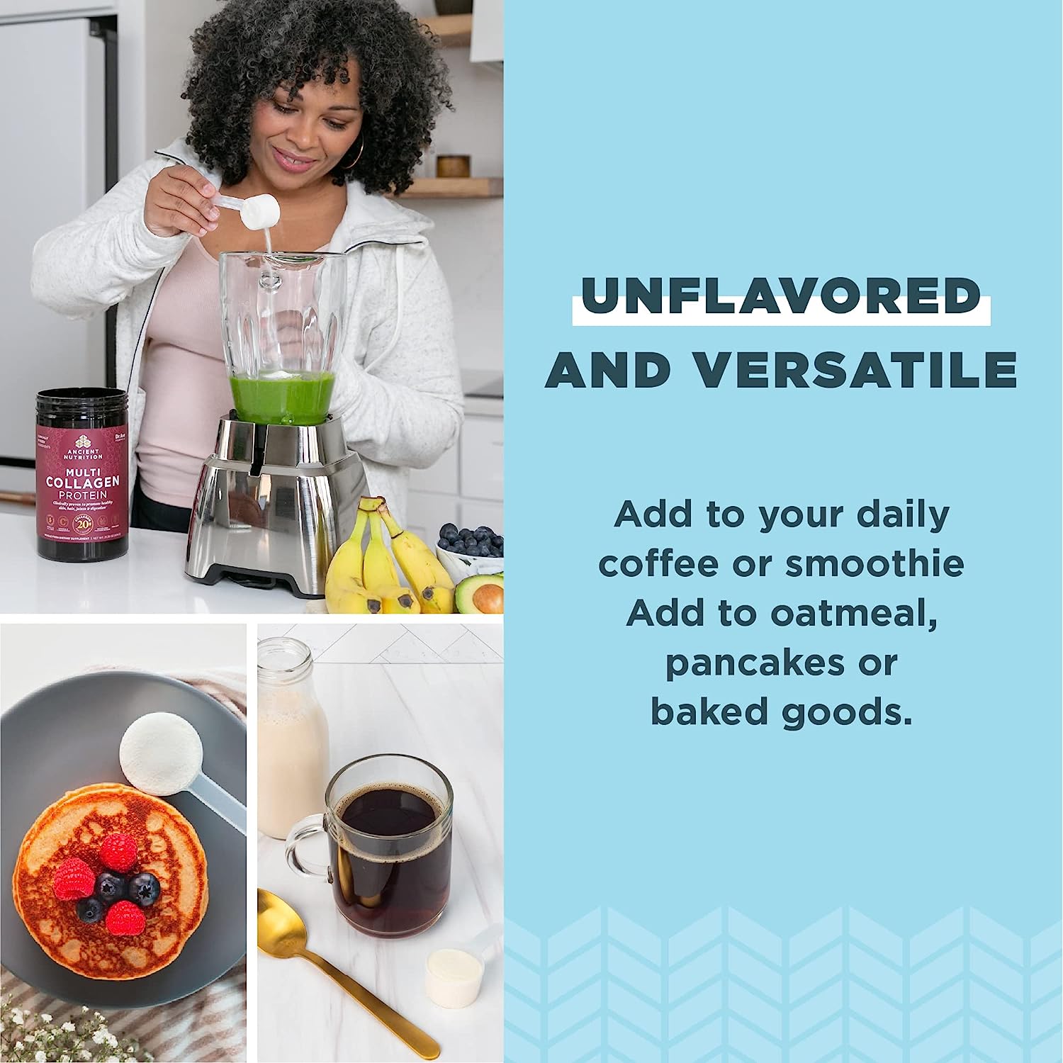 DESCRIPTION : Ancient Nutrition Collagen Powder Protein with Probiotics, Unflavored Multi Collagen Protein with Vitamin C, 45 Servings, Hydrolyzed Collagen Peptides Supports Skin and Nails, Gut Health, 16oz45 Servings
