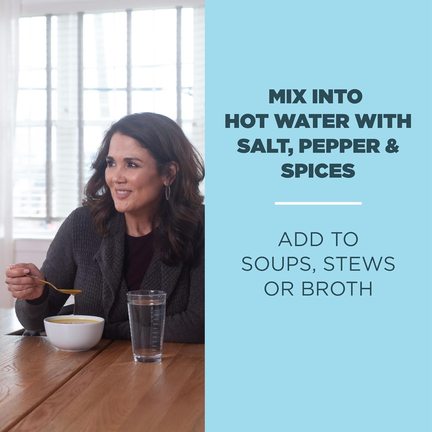 About this item Powerful Bone Broth Nutrition: Delivers 20g of protein per serving with hydrolyzed collagen types I, II & III, glucosamine, chondroitin, hyaluronic acid, and 18 amino acids to support overall wellness. Premium Formula: Formulated with chicken bone broth protein concentrate and grassfed beef bone broth protein concentrate for meaningful health benefits without all the prep of homemade broth. Healthy Joint, Skin & Immune System Support: Formulated to support joint health, reduce occasional joint discomfort and promote healthy skin. High-Quality Ingredients: Non-GMO and raised without hormones or antibiotics, cage-free, pasture-raised, and grass-fed sources for a high-quality and trustworthy supplement. Versatile & Easy-to-Use: Enjoy our stevia leaf-sweetened Vanilla or Chocolate in smoothies or savor Pure or Turmeric flavors as a warm, soothing sipping broth β quick to prepare and perfect for nearly any lifestyle. See more product details,Powerful Bone Broth Nutrition: Delivers 20g of protein per serving with hydrolyzed collagen types I, II & III, glucosamine, chondroitin, hyaluronic acid, and 18 amino acids to support overall wellness,Premium Formula: Formulated with chicken bone broth protein concentrate and grassfed beef bone broth protein concentrate for meaningful health benefits without all the prep of homemade broth,Healthy Joint, Skin & Immune System Support: Formulated to support joint health, reduce occasional joint discomfort and promote healthy skin,High-Quality Ingredients: Non-GMO and raised without hormones or antibiotics, cage-free, pasture-raised, and grass-fed sources for a high-quality and trustworthy supplement,Versatile & Easy-to-Use: Enjoy our stevia leaf-sweetened Vanilla or Chocolate in smoothies or savor Pure or Turmeric flavors as a warm, soothing sipping broth β quick to prepare and perfect for nearly any lifestyle